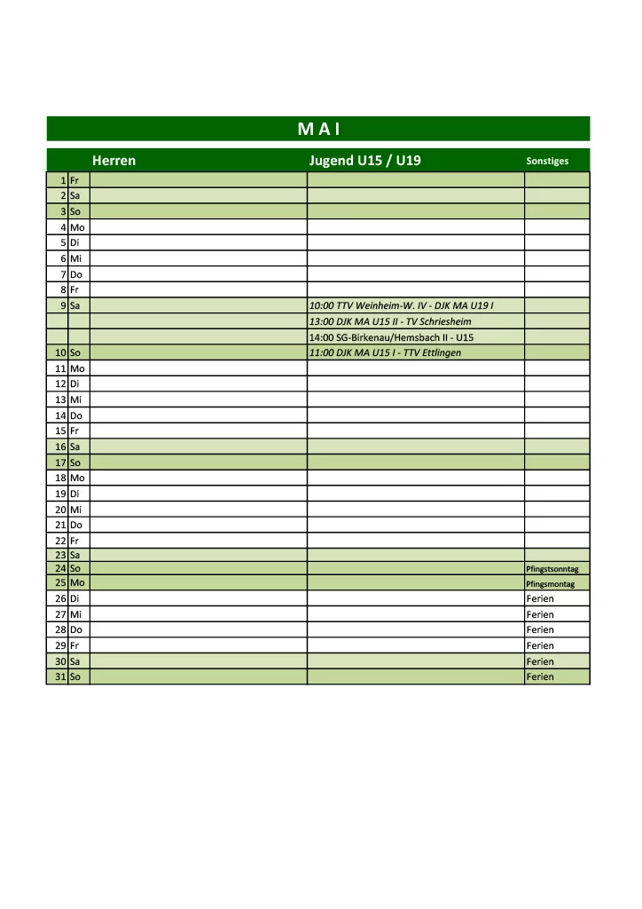 Ab dem 21. Mai, 15:00 Uhr bis einschließlich