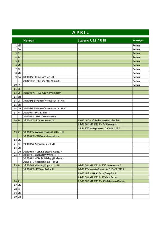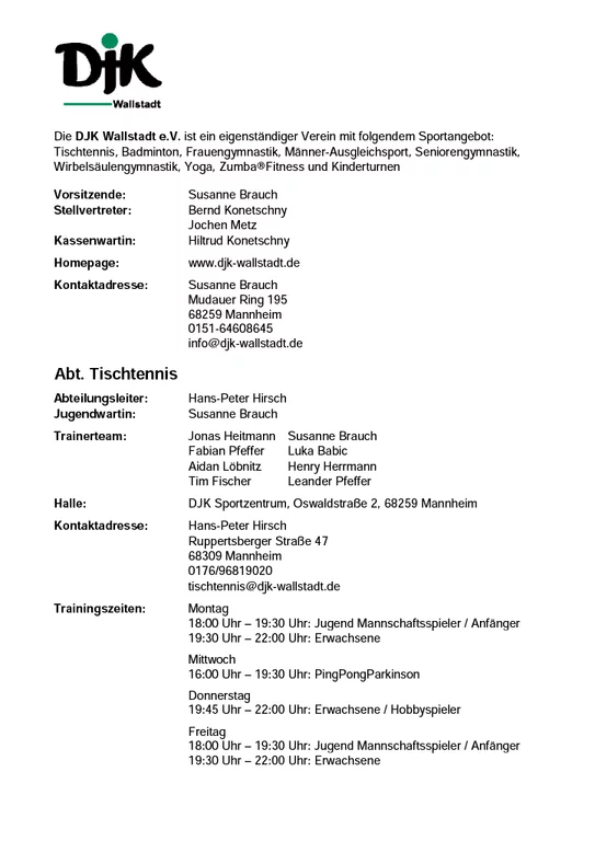 Die DJK Wallstadt und der TSV Badenia Feudenheim danken allen Helfer:innen und Sponsor:innen, die dieses besondere Wochenende möglich gemacht haben - insbesondere Rosemarie’s Restaurant, FIBA Motorfahrzeuge GmbH, re-balance Nadja Weber, Römer- und Rats-Apotheke, Sparkasse Rhein-Neckar-Nord sowie dem TT-Shop Schumacher & Heiler.