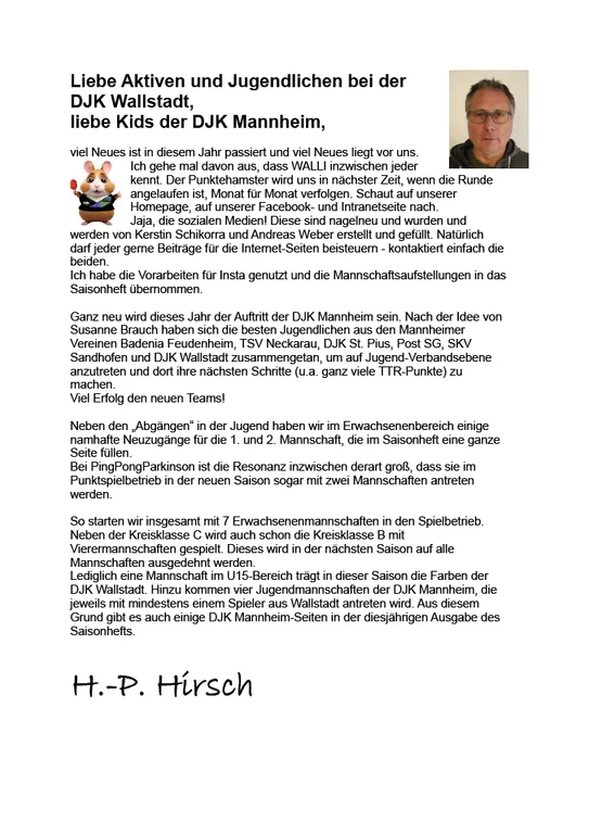 Wir danken Hans-Peter herzlich für sein großes Engagement und die viele Arbeit, die er jedes Jahr in dieses Projekt steckt. Mit dem Saisonheft ist es uns möglich, nicht nur auf die neue Spielzeit einzustimmen, sondern auch die Entwicklung und das Miteinander in unserer Abteilung lebendig zu dokumentieren.