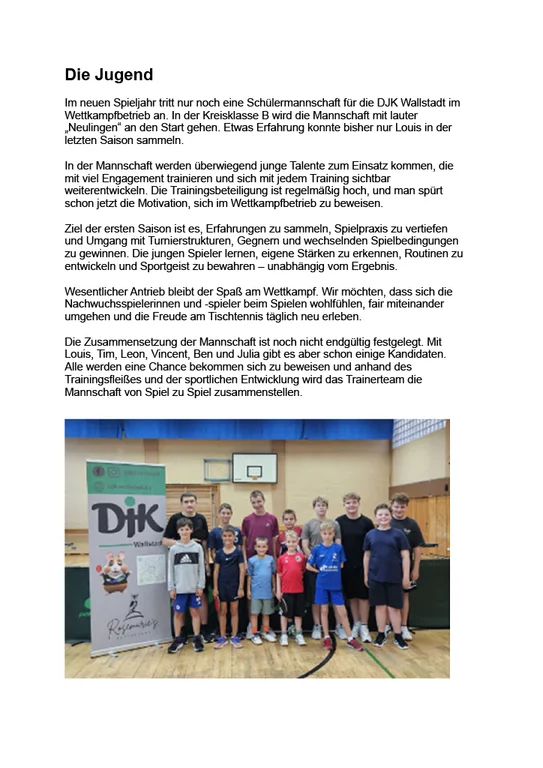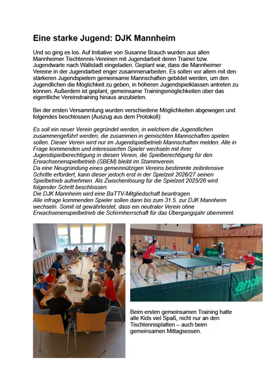 Im Mai haben sich sechs Mannheimer Sportvereine - DJK Wallstadt, TSV Badenia Feudenheim 1889, DJK Käfertal/Vogelstang, Post SG Mannheim, TSV Mannheim-Neckarau und DJK St. Pius Mannheim - zusammengeschlossen, um im Jugendbereich gemeinsame Wege zu gehen.